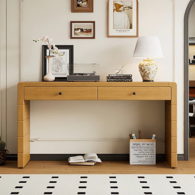 Whisen Wooden Entryway Table with 2 Drawers, Farmhouse Rustic Console Table with Storage - Natural
