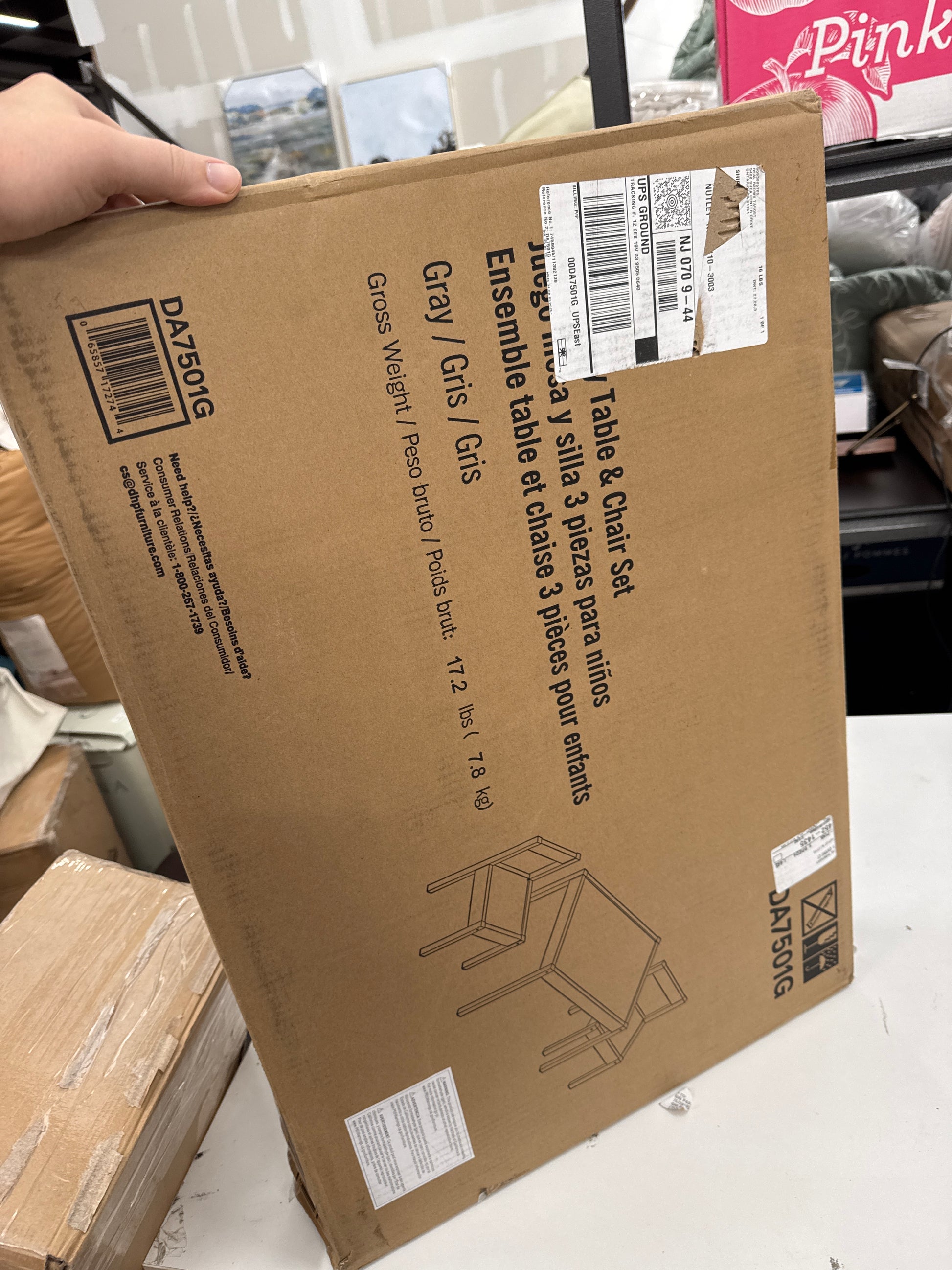 Max & Finn Hunter 3-Piece Kiddy Table & Chair Kids Set, Gray/White