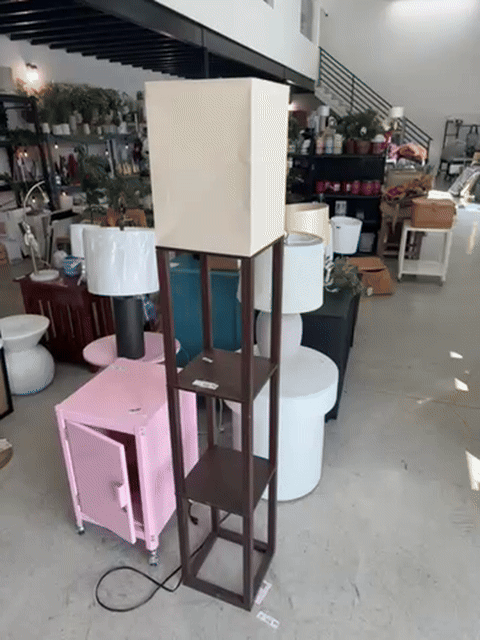 Shelf Floor Lamp Brown - Threshold: ETL Listed, Linen Shade, MDF Body, 62.5" Tall