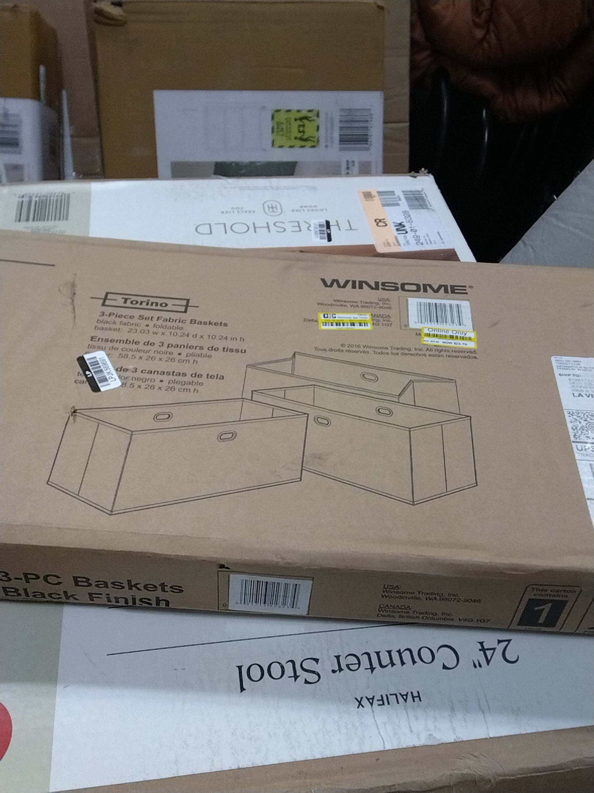 Winsome 3pc Torino Folding Fabric Basket Black: Square Storage Cubes, No Assembly, 11" Compatible