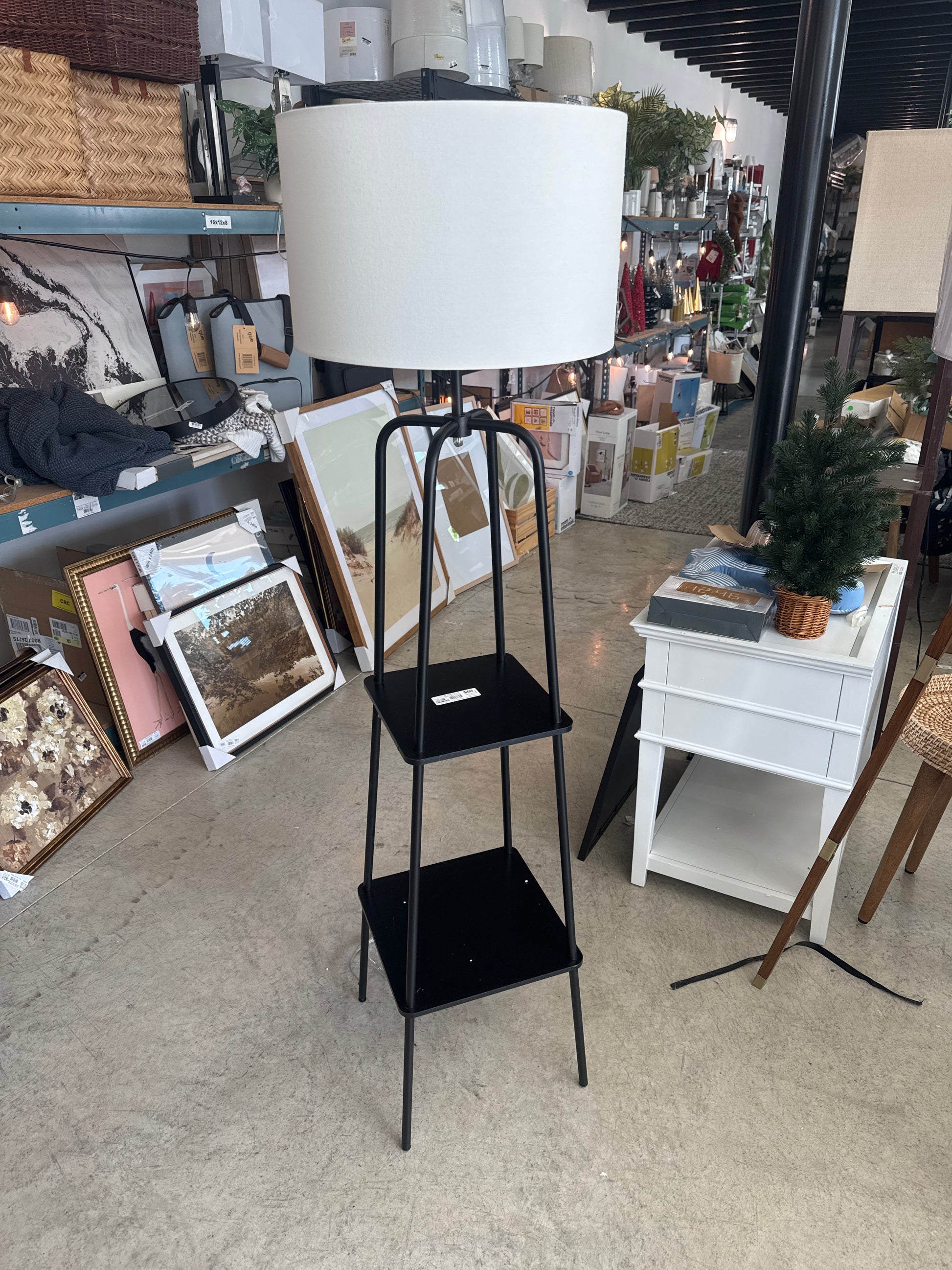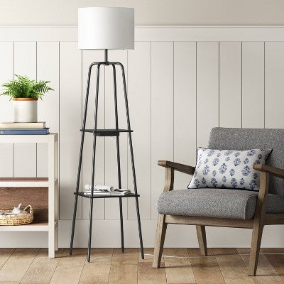 20" Etagere Power Source Shelf Floor Lamp Black Metal/Wood - Threshold: USB Port, Modern Design