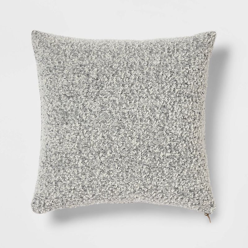 Woven Boucle Square Throw Pillow with Exposed Zipper Black - Threshold