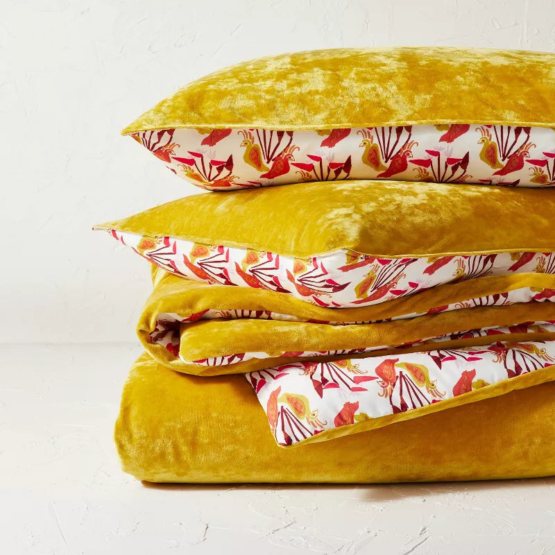 Full/Queen Reversible Velvet Comforter & Sham Set Gold - Opalhouse designed with Jungalow: Polyester, Machine Washable, 3pc