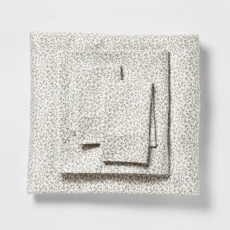 Queen Printed Performance 400 Thread Count Sheet Set Green Vine - Threshold: Cotton Sateen, Includes 2 Pillowcases, Fits 18" Mattress