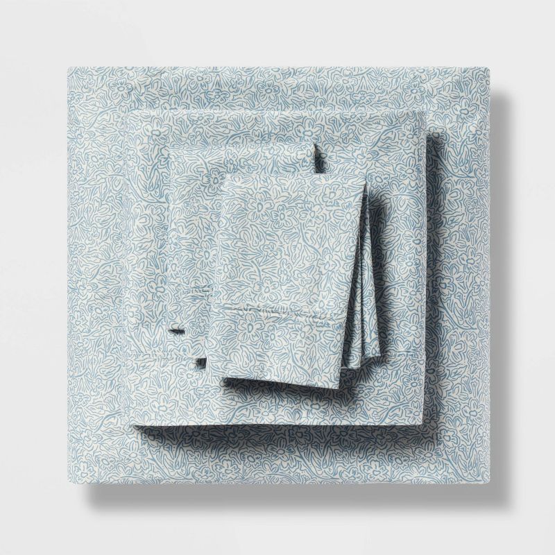 Twin/Twin XL Printed Performance 400 Thread Count Sheet Set Blue Floral - Threshold