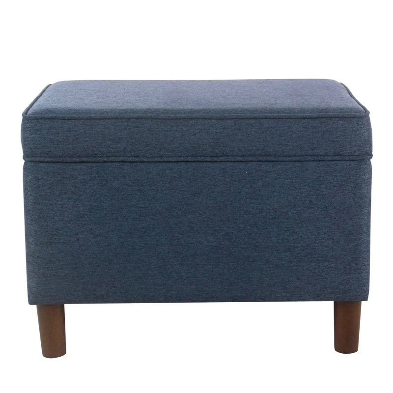 24" Storage Ottoman Blue - HomePop: Hinged Lid, Bedroom & Living Room Furniture