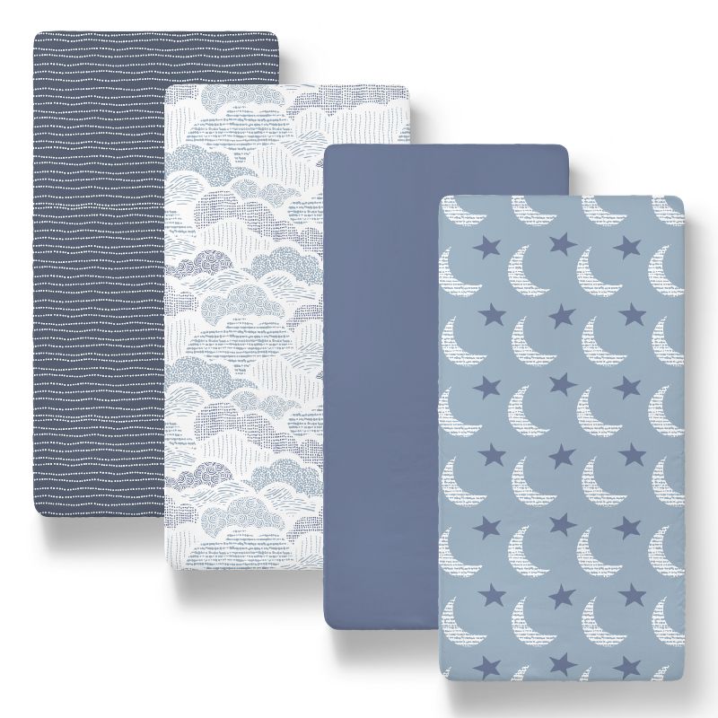 The Peanutshell Soft Cloud Bassinet Sheets, Blue, 4-Pack