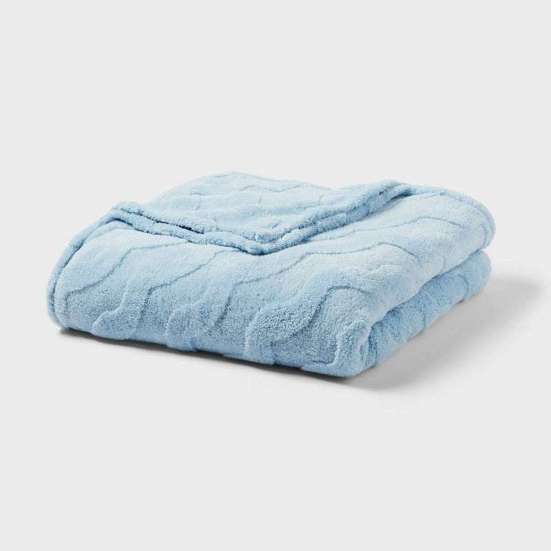 Full/Queen Wavy Jacquard Plush Blanket Light Blue - Room Essentials