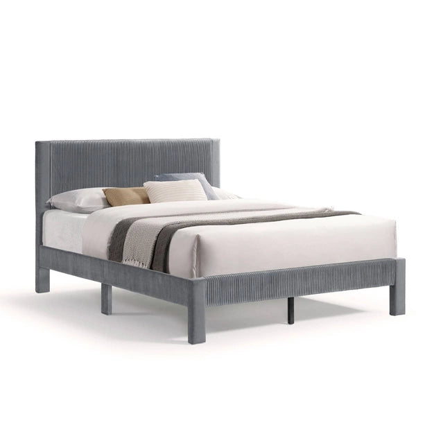 24/7 Shop At Home Queen Cerin Platform Bed Slim Corduroy Upholstered Bed Gray